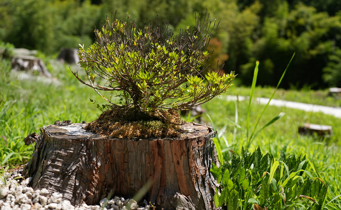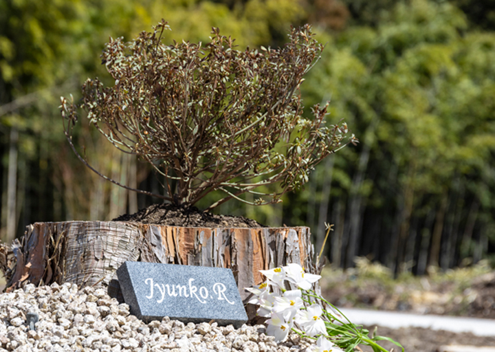ご供養地「鱗-りん-」の敷地内にある木株に加工を施し、パウダー化したお骨を散骨。さらに樹木を植えてご供養します。樹木は墓標となり、訪れるたびに成長していく様子を見ることができます。