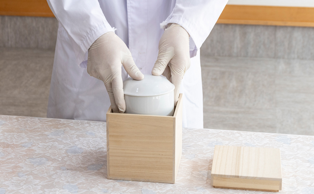 選別・粉骨の工程を経てパウダー化した焼骨を、ご遺族の元へお返しいたします。「お墓を建てずに自宅で手元供養したい」「納骨のことをゆっくり考えたい」という方におすすめです。